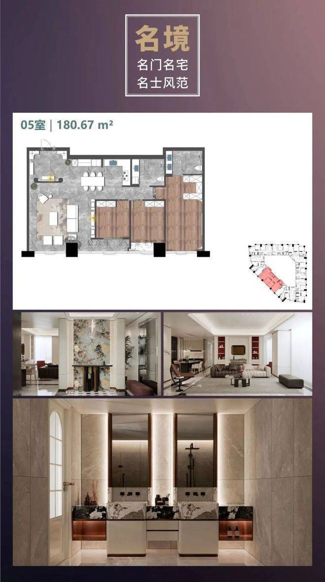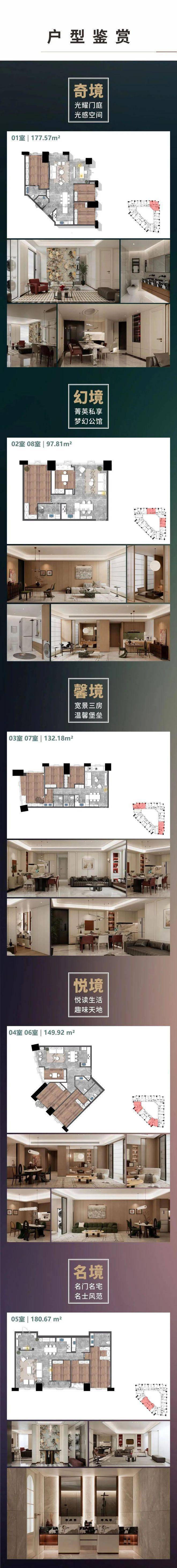 主力户型:建面约97-180㎡的2-4房,包括97㎡两房、132㎡三房及180㎡四房,精装交付 。