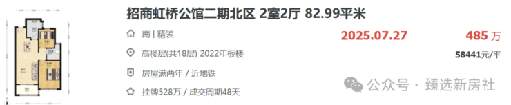 次新房中,外环外的大虹桥,招商虹桥公馆一期、二期北区和南区,7月的二手成交价全部跌到了6万以内。