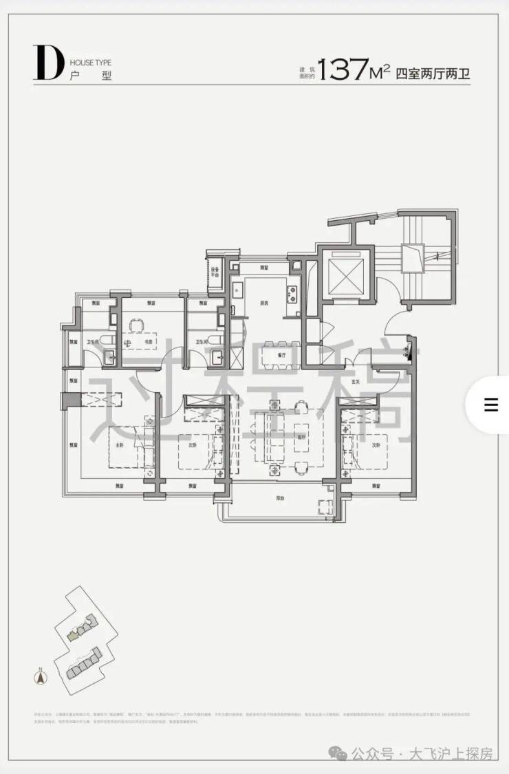 建面约137㎡的4房户型,在同等面积下实现了更精巧的功能布局,标配入户玄关,客餐厅、厨房、阳台一线贯通,家政间,通透感十足270°全景舱设计是项目一大亮点,部分户型通过北/南/西三向展开近36米连续玻璃幕墙,西南向无遮挡,城市与公园景一览无余