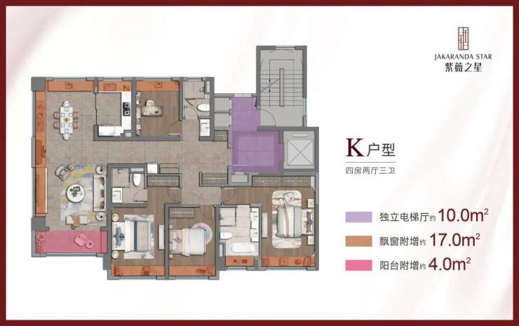 再看 141㎡四房,周边楼盘四房户型基本都是单套房设计,家里来客人住客房,就得和主人共用卫生间,别提多不方便。而紫薇之星不仅四开间朝南,让每个房间都 “喝饱” 阳光,还打造双套房,主卧堪比豪华酒店配置,另一间套房给孩子住,学习、休息都有独立空间。剩下的两个房间,不管改成书房、儿童房,还是客房,都宽敞又实用。