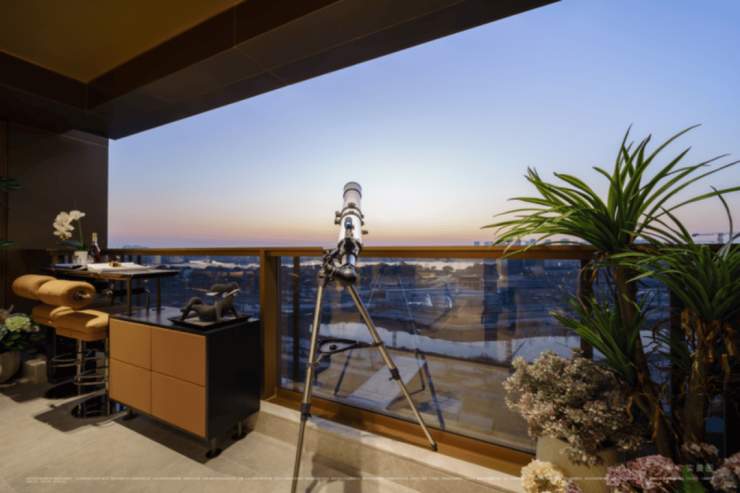 而侧向的观景横厅配合大阳台的最大价值就是为了突出景观资源的优势。