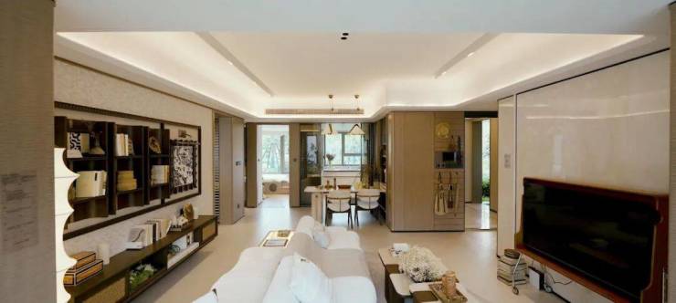 “四室两厅两卫满足三世同堂,比较匹配改善型家庭需求。所有的在售房源都是精装交付,所有的电器都是国内一线知名品牌。”黄杰介绍,该户型采用全明设计,南北通透,客厅、餐厅、厨房一体化布局,玄关、厨房、卫浴三大收纳系统,均打造了精确到毫米级的储物空间,全屋预留收纳约11立方米,使用率高。星级酒店式套房主卧更引入270°飘窗,夕阳与湖景一览无余。