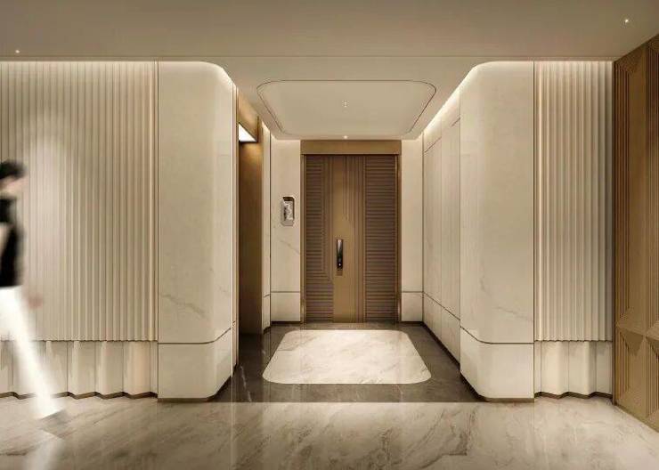 4#为2梯2户(准一梯一户)设计,相当于每户独用一部电梯,所以我们根据D系列户型图可以看到,每个户型入户门口与电梯之间都有一块门前入户空间,大概是约6-7㎡,未来业主可以用作收纳空间,摆放鞋帽、外套等,非常人性化。