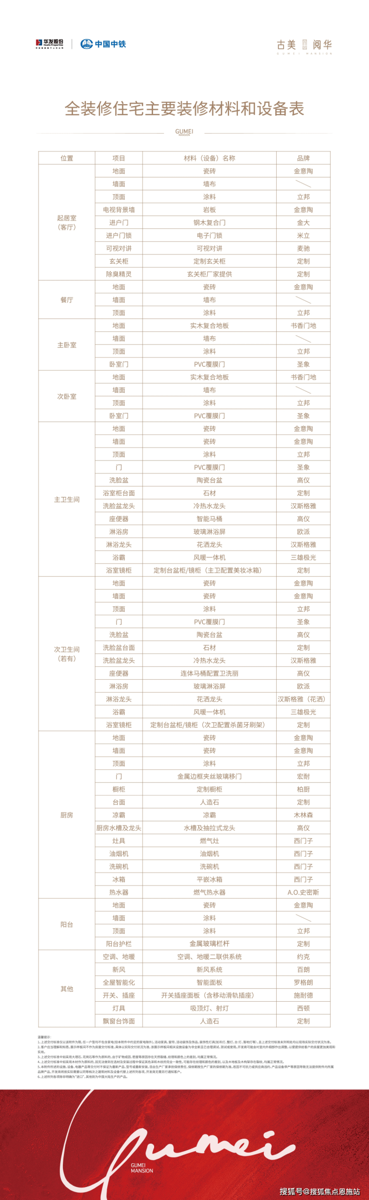 项目装修材料及设备清单