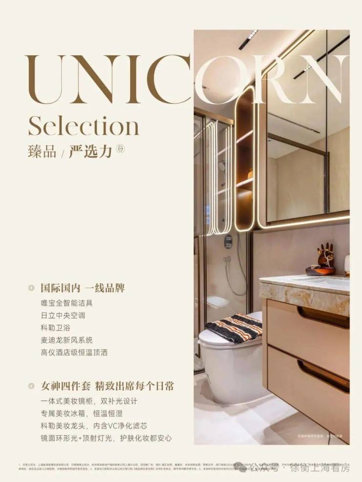 更于主卫空间首创“闵行美妆四件套”:科勒美妆龙头、美妆镜柜、美妆冰箱,辅以“顶+面双补光照明”,定制的科勒「玫瑰金色美妆龙头」,不仅出水方式可调整,还内置VC 净化器滤芯,让水质更软更健康。以专属的细节设计,礼遇居者。