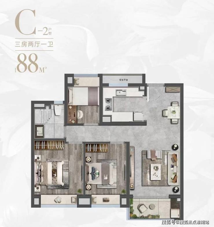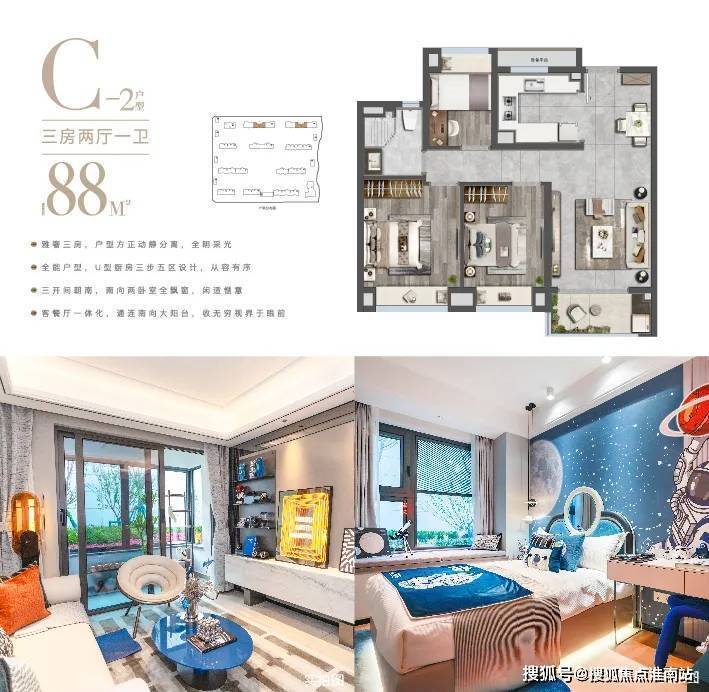 在产品设计上,项目主力户型建筑面积约88-133㎡臻质现房,可以同时满足二胎家庭、三代同堂等多元需求,更以“超悦”臻装标准,兑现业主期许。作为项目备受关注的户型,建筑面积约88㎡户型以“三开间朝南+全明格局”突破传统刚需户型设计理念,三房设计适配从单身到三代同堂的全周期需求,飘窗与观景阳台增强空间延展性,满足年轻小家庭多方面需求。