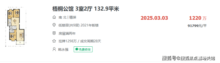 我们查阅链家网的成交记录可以发现,在梅陇板块房龄10年内的次新房,建面约120-130㎡左右的二手成交量,今年有且只有以下2套: