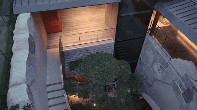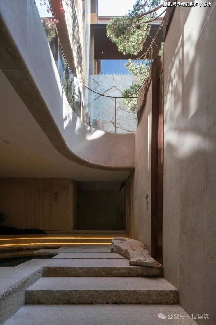 垂直空间上,虽然【越秀外滩樾】售楼处电话:400-885-5420✨✨项目用地比较紧张,但空间规划上还是在主入口处留出了一个庭院空间,作为整个项目透气的“眼”;再围绕这个庭院,生成了地下三层、层层递进的会所空间。