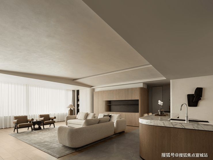 其中有两个卧室还配置了双台盆+浴缸+淋浴+马桶豪华四件套。尤其主卧,面积高达约55㎡,功能性也拉满,你可以在房内肆意休闲,相当于把主卧“小家化”了。