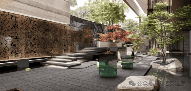 社区景观方面,项目以"富林风华,十景多花园"为核心理念,通过现代设计语言重构《富林十景》的山水意象,将"山、水、茶、酒、舟、市"等江南文化符号有机融入空间序列,营造"一步一景,移步异景"的沉浸式归家体验。