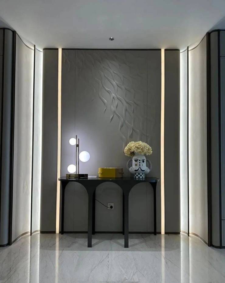 若是实用派,这种长进深且方正的厅堂也非常友好,沿墙壁可以摆下多个收纳柜、装饰柜等等,满足对收纳和展示的众多需求!