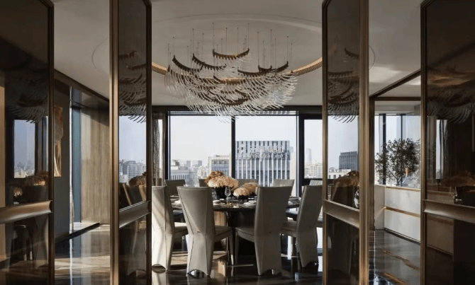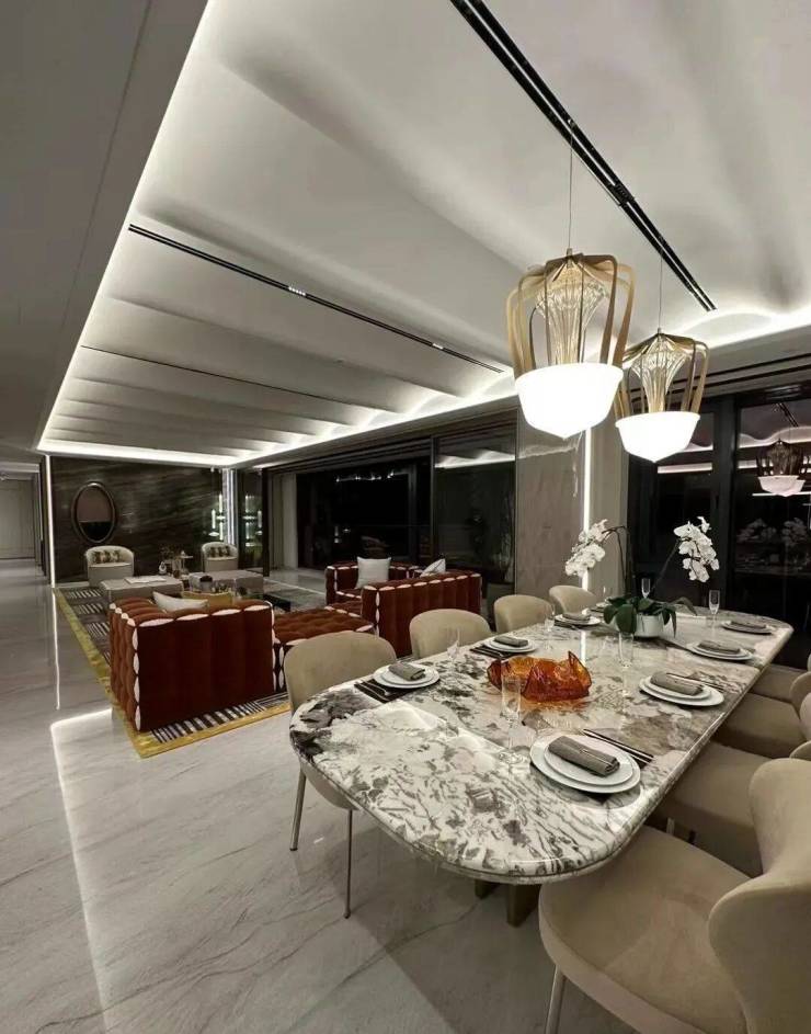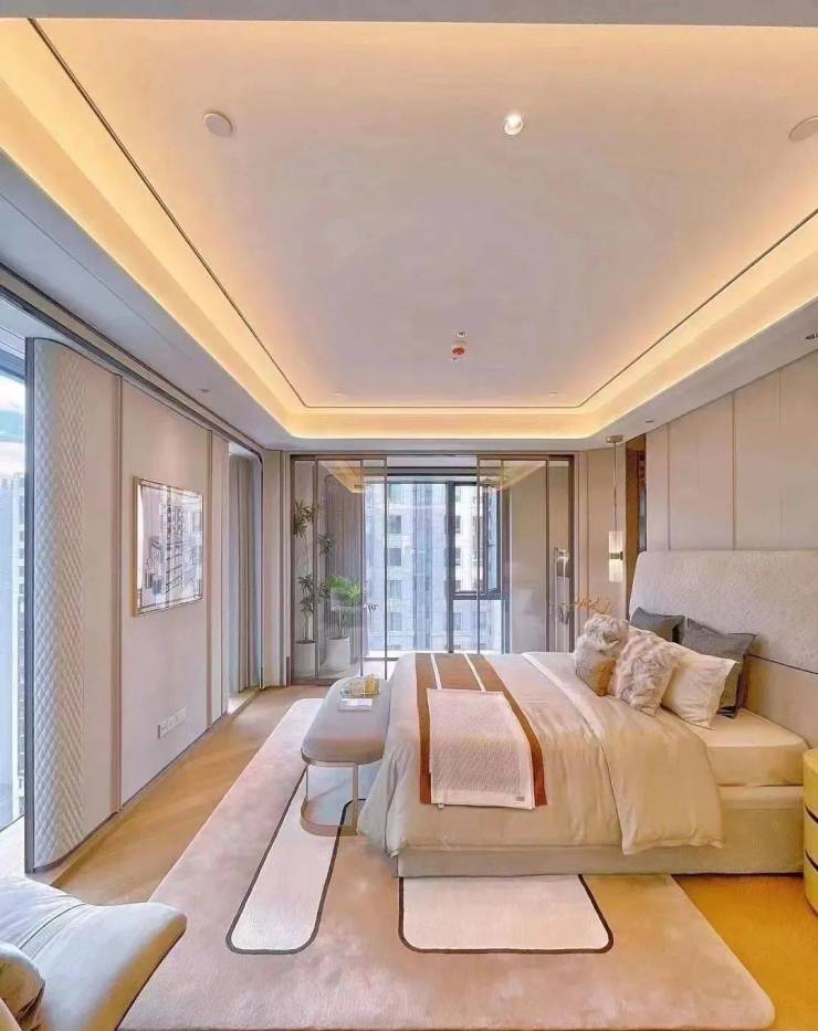 同样是约3.6米的奢阔层高,朝南横向跨度超37米,会客厅面宽超18.5米!空间奢阔,全景玻璃幕墙,超270度环幕视野景观震撼!