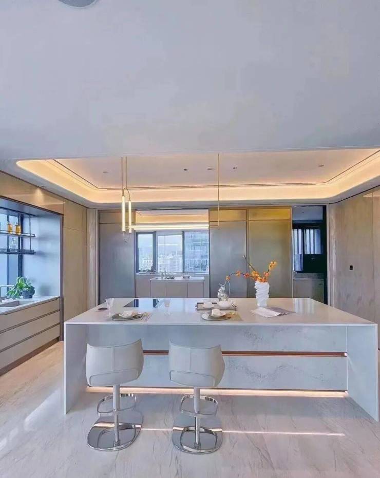 不同于市面上的短进深空间,这里足够举办小型Party,长条餐桌、迷你吧台、转角大沙发,都能轻松容纳,可以承载多重摩登场景!