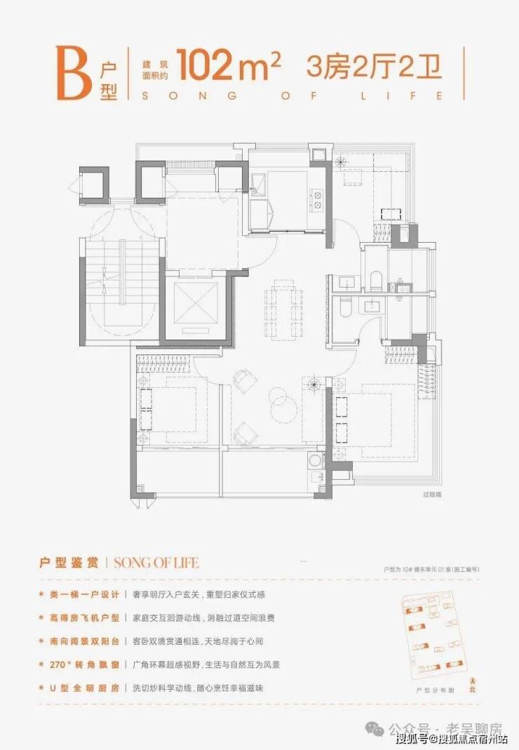高得房率的飞机户型减少过道浪费,餐厅空间比同面积段户型更阔绰,家庭聚餐更显从容;双卫均带飘窗,洗漱时也能沐浴阳光; 南北双270°环幕视野,通风采光俱佳,适合追求生活品质的年轻改善家庭。