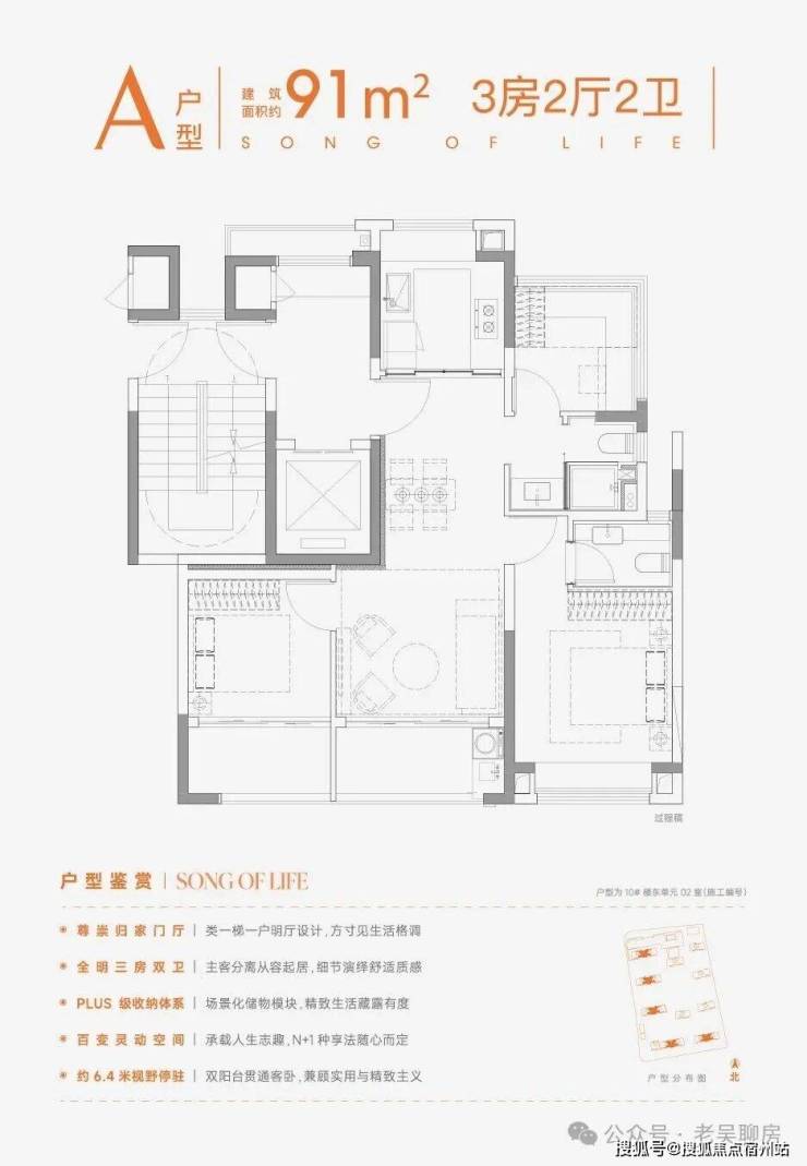 建面约102㎡三房两卫则主打“舒适升级”