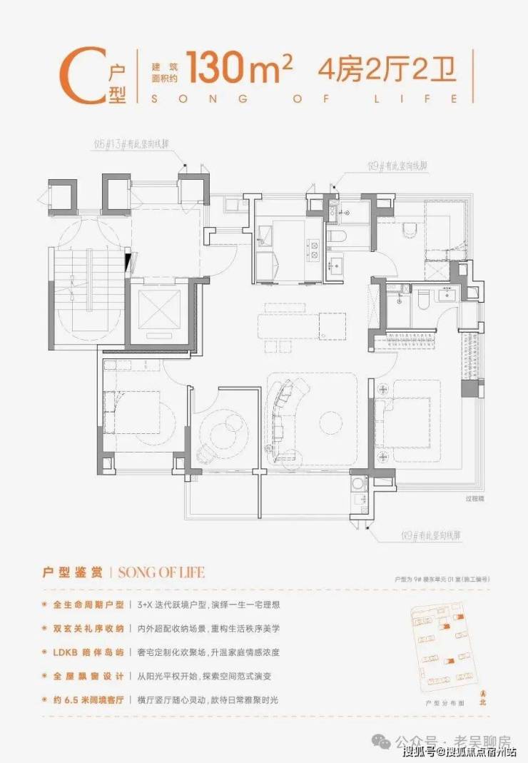 3+X 灵动空间可根据需求改造成书房、儿童游乐区或老人房,满足二胎家庭、三代同堂的居住需求; LDKB无界通厅与X空间打通后,可形成约6.5米巨幕横厅,朋友聚会、家庭互动都有足够空间;主卧以酒店式套房标准打造,独立衣帽间、南向全明主卫、270°转角飘窗,奢享感拉满; 全屋6大采光飘窗,让每个房间都明亮通透。