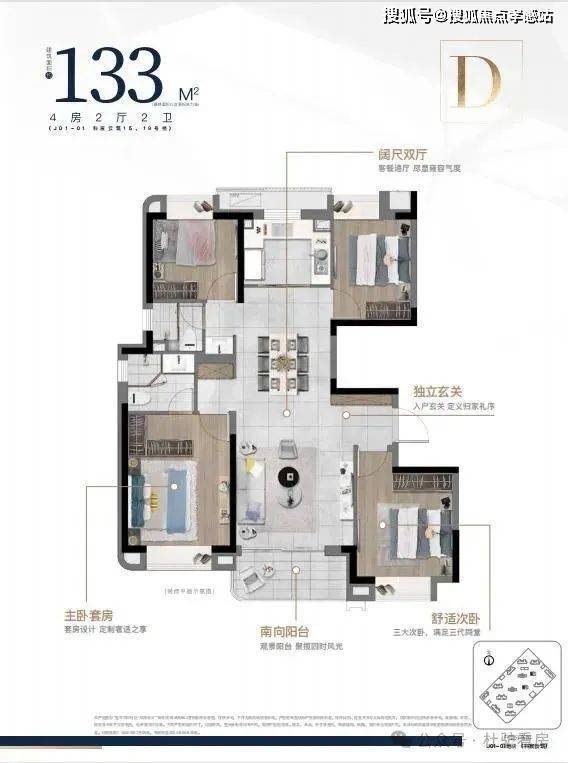 建筑面积约93㎡、100㎡、118㎡独角兽住宅,更多三房选择,满足更多家庭不同置业需求。空间上采用经典竖厅设计,整体分区动线明确,不同功能区间互不干扰,双卫配置,增强私密性与生活从容性,三房搭配,灵活可变。