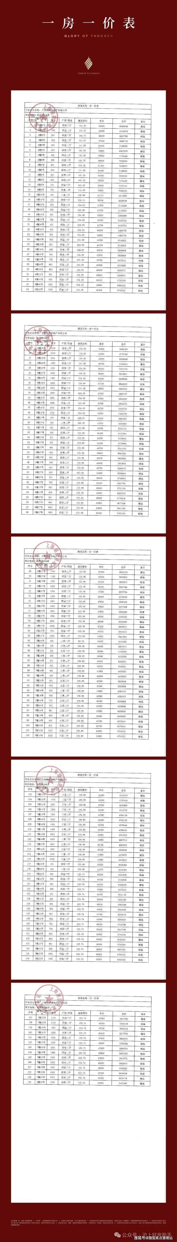 项目一房一价表: