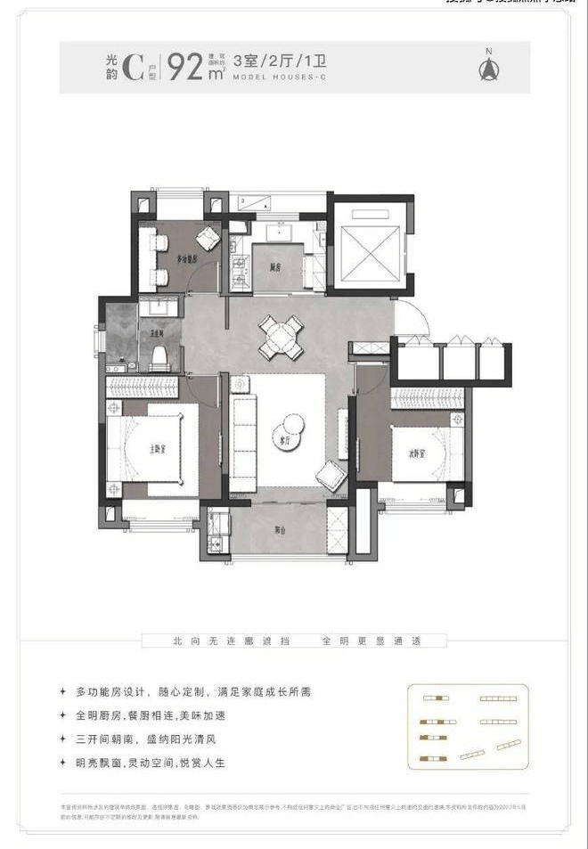 面积:建面约82㎡ 2房1卫;建面约92㎡3房1卫;建面约111㎡3房2卫;建面约133㎡4房2卫