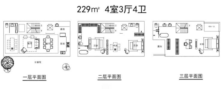 一层:独门独院入户,打造独栋式归家仪式感。会客厅、厨房与灵动空间构成家庭社交核心,大面积落地窗成点睛之笔,最大限度引光入室。预留大面宽耳房可改造为独立套间,满足多样化需求;1-3 层贯通梯与电梯井(预留)设计,最大化减少空间浪费。