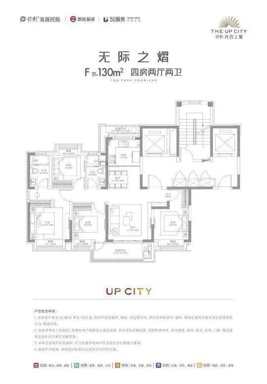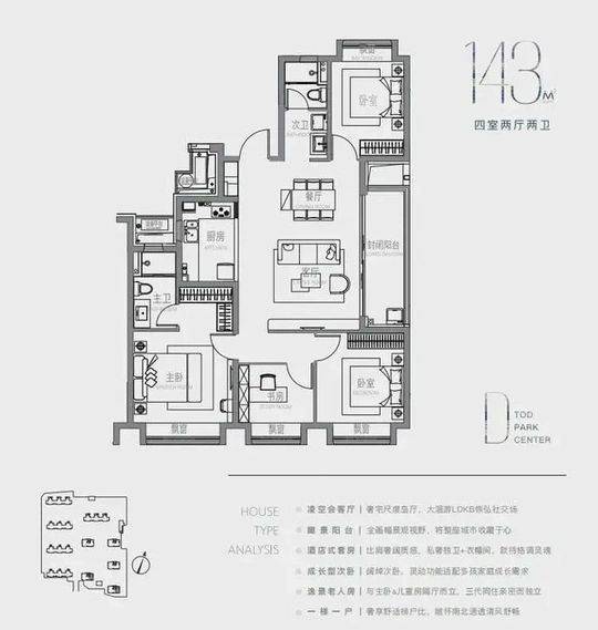 项目总建筑面积约百万方,涵盖住宅、商业、办公、教育等多元业态,容积率2.0-2.3,绿化率超35%。主推建面约93-143㎡的3-4房户型,满足不同家庭结构的居住需求。93㎡三房总价约518万起,三开间朝南,空间利用率高;143㎡四房总价约999万起,四开间朝南,6.5米巨幕横厅,主卧套房设计,提升居住品质。