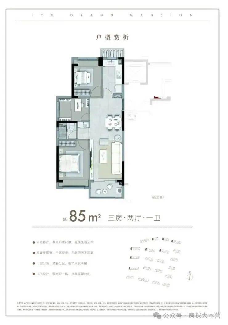 观察该项目销售轨迹,尽管去化速度平缓直至现房交付,但价格体系始终保持稳定:两个主力户型(85㎡/96㎡)总价锚定400万水平,极端情况下85㎡顶楼单元也仅微调至360万。