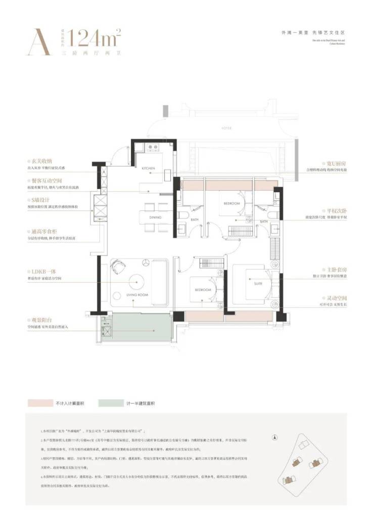 建面约124㎡3房: