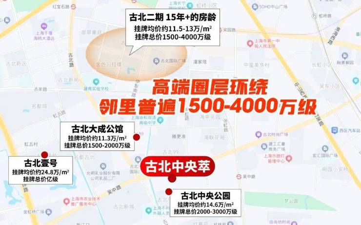 时至今日,古北依旧是企业主、高管与精英聚集地,古北中央萃售楼处电话:400-8678-334☎️✽✽✽✽(官方认证)周边邻里多为1500-4000万级高端住区,圈层高度始终在线。