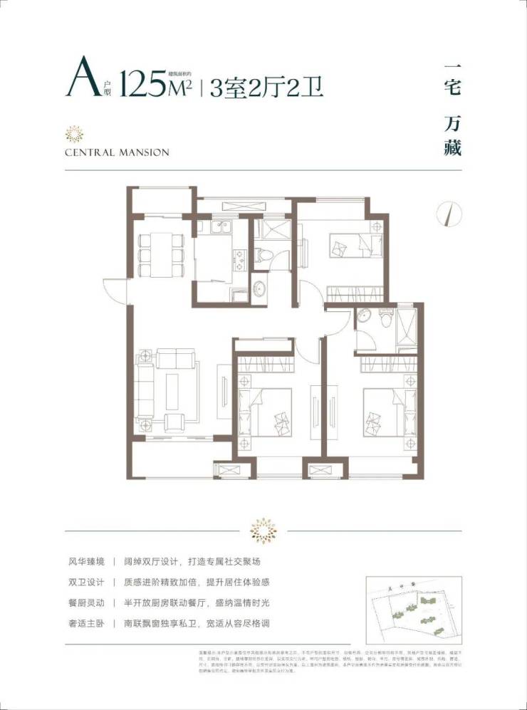 建面约125㎡契合三口之家精致需求