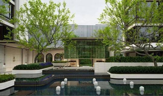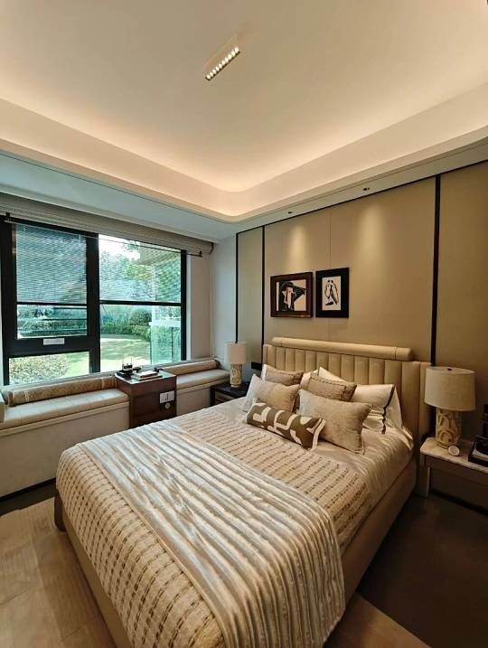 项目在建筑设计上独具匠心,外立面采用米白真石漆搭配深咖色线条,搭配三段式构图与法式廊柱,尽显典雅格调。社区内部景观以“法式宫廷园林”为蓝本,打造“一轴三园五景”的沉浸式景观体系,满足全龄段活动需求。