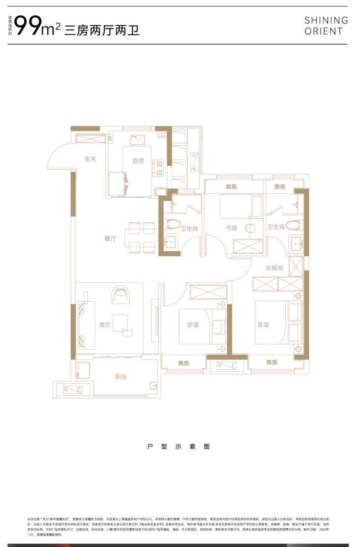 建面约99平㎡三房两厅两卫