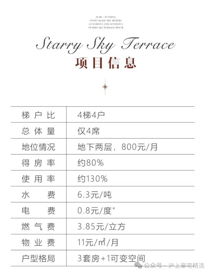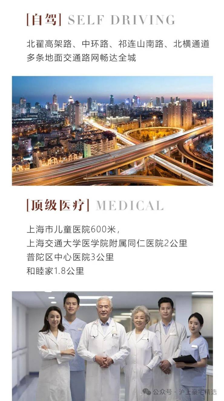 项目绿化率达45%,内部配置全屋智能系统、地暖及新风系统,装修标准高达10000元/㎡,采用Fisher&Paykel、Poliform等国际品牌。户型设计包含3套房+1可变空间+1保姆间,实际使用率约130%,得房率达80%,并赠送167㎡露台及设备平台。周边1公里范围内覆盖万豪酒店、近铁城市广场等商业配套,上海市儿童医院、普陀区中心医院提供医疗保障,2/13/15号线三轨交汇的交通网络进一步强化其区位优势