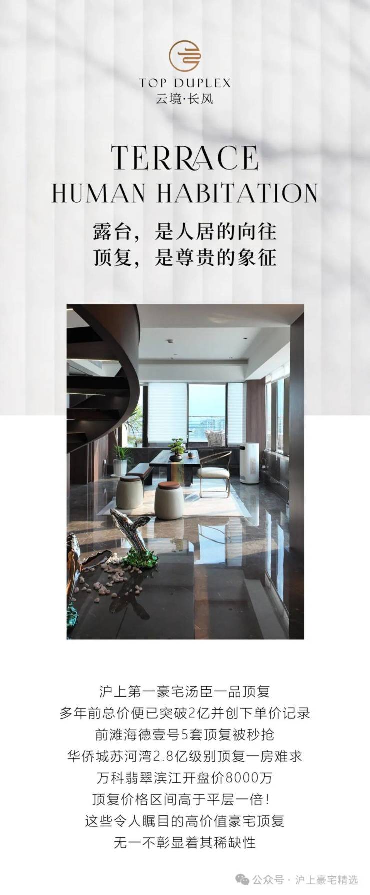 云境长风售楼处预约电话:400-9955-415☎️☎️✅✅✅【售楼热线】✔✔✔营销中心热线☎400-9955-415☎️☎️✅✅✅售楼处地址☎400-9955-415☎️☎️✅✅✅是位于上海普陀区苏州河畔的高端商办项目,主打建面约336-341㎡的顶层空中复墅。项目以挑高6.3米的复式设计搭配超140㎡的奢阔星空露台,打造空中院墅的居住体验,单价约7.5万/㎡,总价2400万起。作为50年商办产权项目,其不限购属性兼具自住与投资价值。