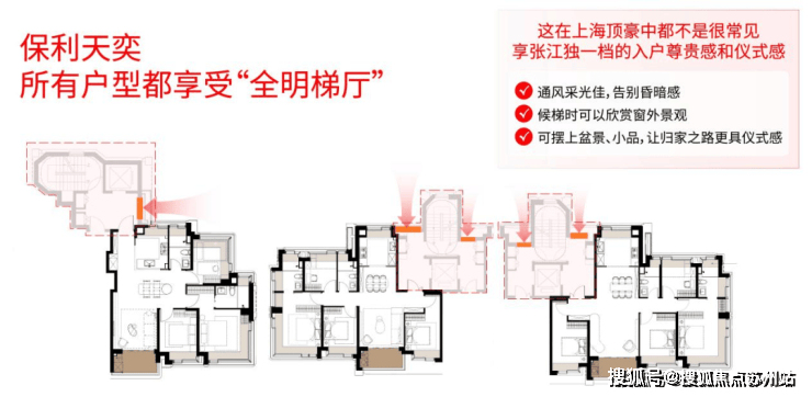 据统计上海700-1000万级新房项目, 全明梯厅大部分都是大户型豪宅专属,即便是均价20万的顶豪,也很少实现这种设计。
