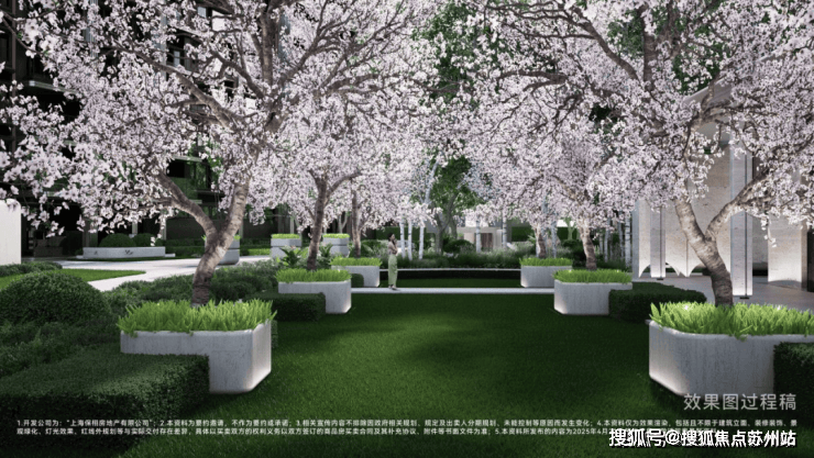 ④ 八大乔木主题林带。保利天奕在植物的选取上也非常考究,精选全球度假植物,打造了 八大乔木主题林带,呈现 四季不同景观。