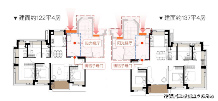 建面约122㎡/137㎡户型,实现 类一梯一户的越级体验,这是仅在2000万大平层才会出现的“稀有款”。不仅尊崇感拉满,更能实现全明梯厅+户内玄关 “双玄关”的“隐形扩容”,雨伞、换鞋等动作都能在梯厅一次性完成。