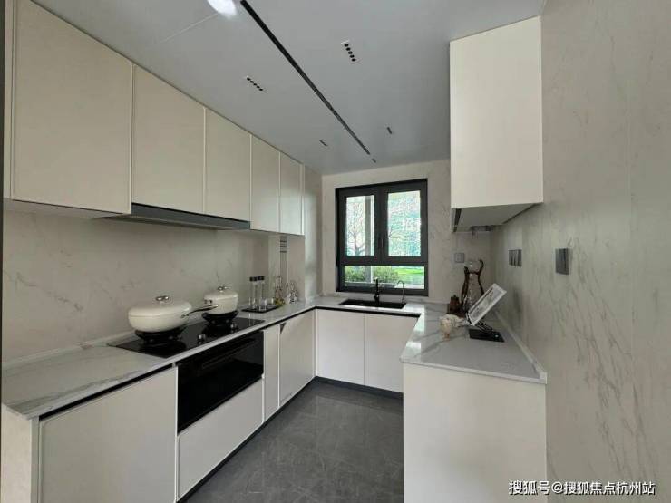 再来看下厨房配置。U型厨房,预留了大约1米宽(独家君实测)的双开门冰箱位置,厨电采用方太四件套——烟机、灶具、蒸烤一体机、洗碗机。其中洗碗机,轻扣门板可自动开门的新款!