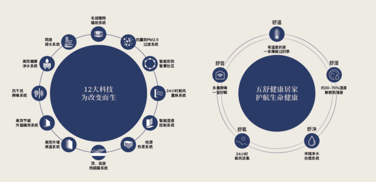 金茂引领行业的“绿色健康科技住宅”基因必将在此延续和升级。从温度、湿度、空气、水质、光照到噪音控制,一套完整的五舒十二大科技系统将是标配。