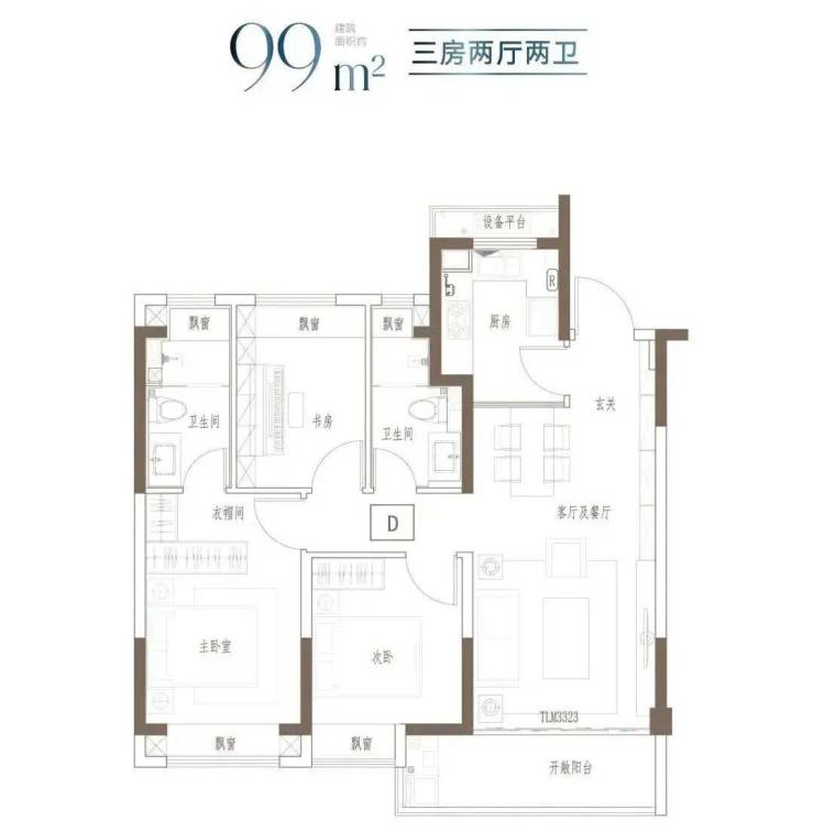 户型特点:阳光三房,同等面积更多功能;宽幅南向观景阳台,把居住变成风景;步入式衣帽间,给予生活更多从容。