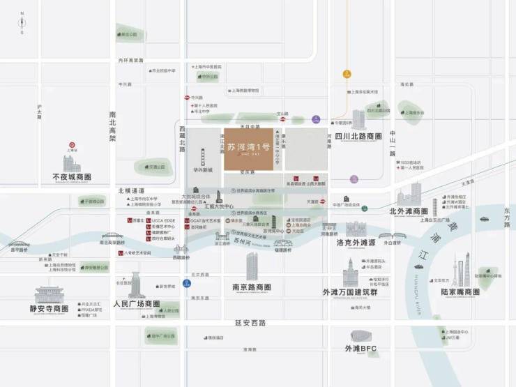 除了地段百年人文历史的情怀,苏河湾区域的交通也是相当方便,区域内5条轨交(3/4/8/10/12号线)+3大交通动脉(南北高架/内环高架/北横通道)加持下,足以轻松实现通达全城。
