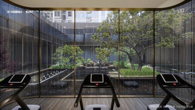 同时,眼见为实的落差约10米的悬瀑水幕下沉式庭院,在奢石、臻材等元素的空间应用中,不但将项目规划的“缦奢主义”实景还原,同时还将会客区、泳池和健身房的功能和景观有机融为一体。