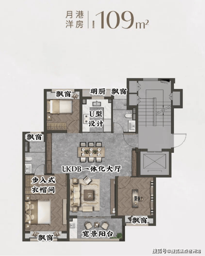 这套户型依旧拥有 超高的实得率,6飘窗+1阳台的设计, 且无纯走道空间,使得整个户型的可使用面积大大增加。