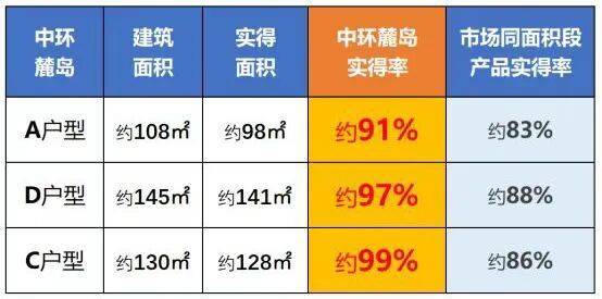 并且,每个户型的实得率都比现有的新房都高出了约8%-10%,具体如下:
