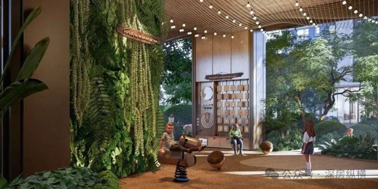 架空层不应是功能的堆砌,而是能让业主们休闲放松、流连忘返的温馨场所。在这里,目之所及皆是风景,移步换景总在自然环抱之中,孩子们在绿荫环绕的游乐区嬉戏打闹,老人在洒满阳光的休闲区闲话家常,每一处空间都承载着生活的闲适印记。
