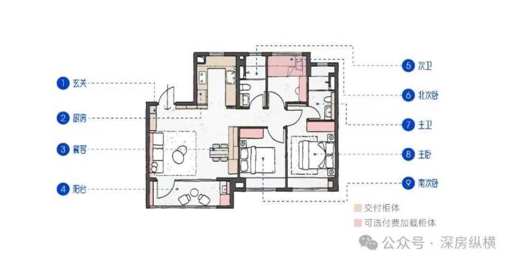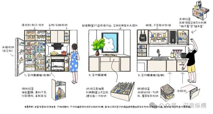 ▲ 97㎡C户型厨房满载收纳手绘示意图,非交付标准,具体以实际交付为准