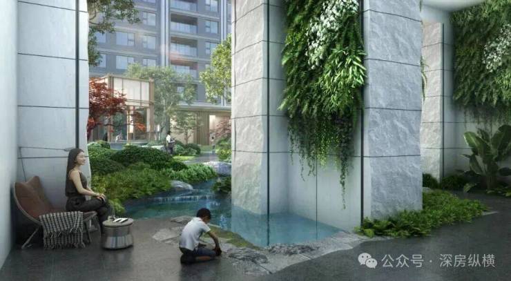 ▲ 贝涟C1架空层内绿植水系意境创想图,非交付标准,具体以实际交付为准