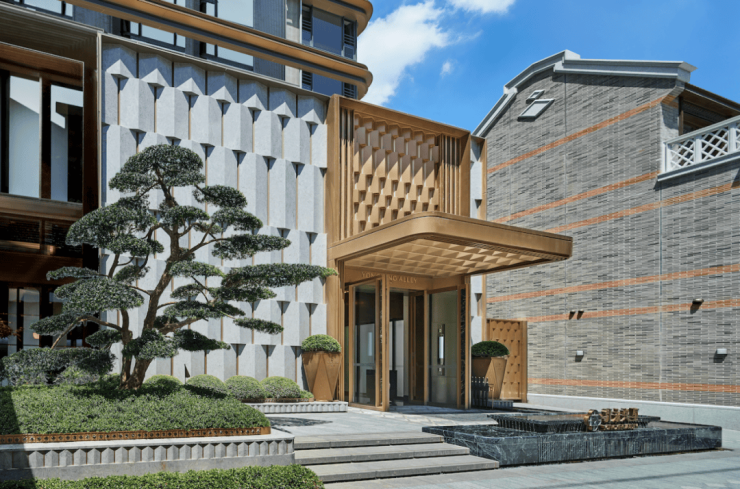 如何在风貌别墅上做出新意,保利·永兴里交出了新的创见,8月开放的实景示范区中,“一巷一坊门”、五重归家礼序,重构了的当代门第尊崇感,大面积奢石运用,再现海派精致腔调。酒店式落客区营造归家仪式感,Prada绿色奢石镶嵌门厅与水景之中,地面菱形地花与海棠纹镶钻拼花,入户门厅铺贴范思哲黑色奢石,材质碰撞尽显奢华。