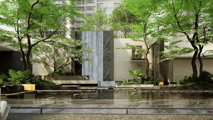 内造约4万㎡私享绿境,以“如梦江南 贤庐雅境”为主题打造“两轴三院多花园”的园林体系,中轴景观通廊宽度达82米,包含镜面水景、全龄活动场地、星空草坪、宠物专属公园等,为业主提供全天候半室外的高品质活动空间。