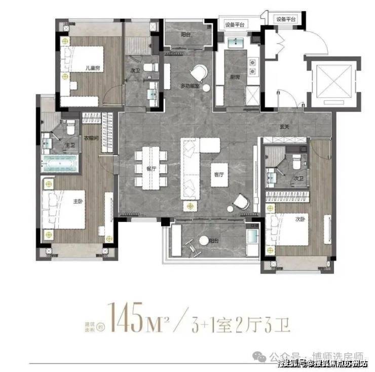 建面约145m²户型图
