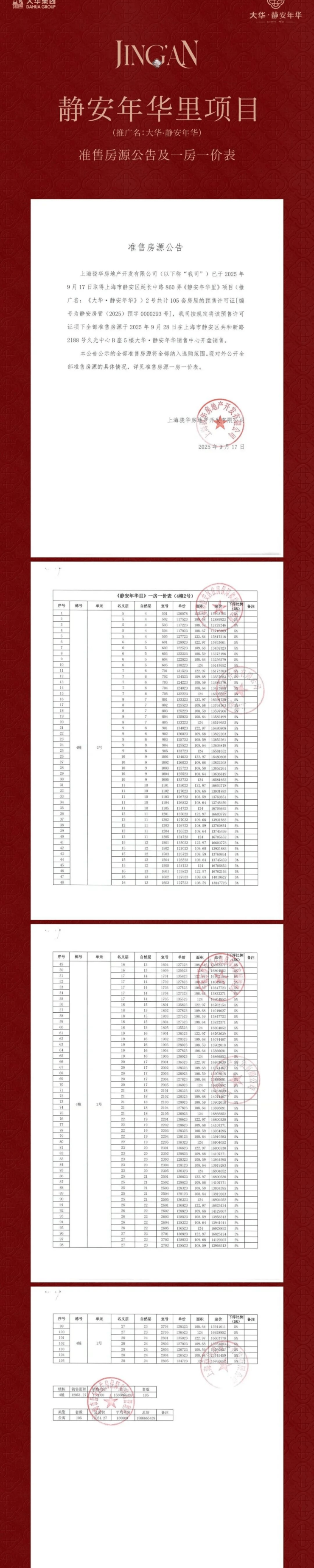 ☀︎大华静安年华售楼处电话:400-8787-740☎☎☀︎一房一价表: